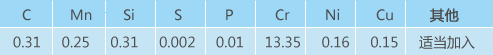 化學(xué)成分: 出廠狀態(tài)及參考硬度:退火HB230